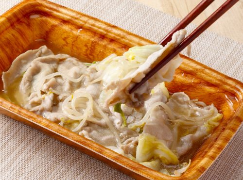 寒い日にうれしい、新しいあったかメニューが登場!もやしと白菜の上に、スライスしたお肉と特製の味付けジュレをのせて、電子レンジで 600W・約5分チンするだけ。ふたを開けた瞬間そのまま食べられ、お肉の旨みがしみ込んだ野菜はしっとりやわらかく、スープまでごくごく飲み干したくなるおいしさです。味は2種類。鶏むね肉の「白だし柑橘風味」は、さっぱりと上品な味わい。豚ロース肉の「和風だし醤油風味」は、しっかりコクのある満足感。どちらも忙しい日の夕食やおひとりランチにピッタリ。