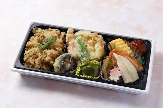 惣菜 あさりご飯の春御膳 お花見シーズンにぴったりの ボリューム弁当! サクサクの天ぷら5種盛りに、フキやタケノコなど旬の味わいと、あさりの炊き込みご飯。たっぷりのあさりの出汁と旨みが浸み込んだ炊き込みご飯は冷めたままでもおいしいので、お花見やご家庭でのお祝い事にもぴったりです。デザートに桜餅もついて、ボリュームたっぷりの春御膳です。 取扱店