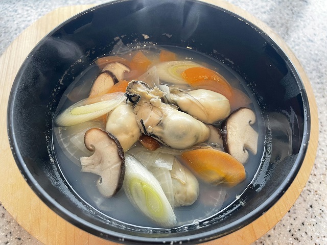 ※牡蠣の旨みが存分に引き出し、昆布や椎茸、根菜類の旨みをプラスしているので、塩味はかなり控えめにするのがおすすめです。素材の旨みの掛け合わせをお楽しみください。